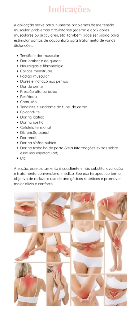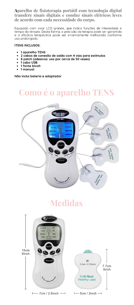 4) O tratamento não pode ser efetuado, a menos que ambos os dois eletrodos estejam colocados na superfície do corpo, não é necessário colocar os dois eletrodos simetricamente
